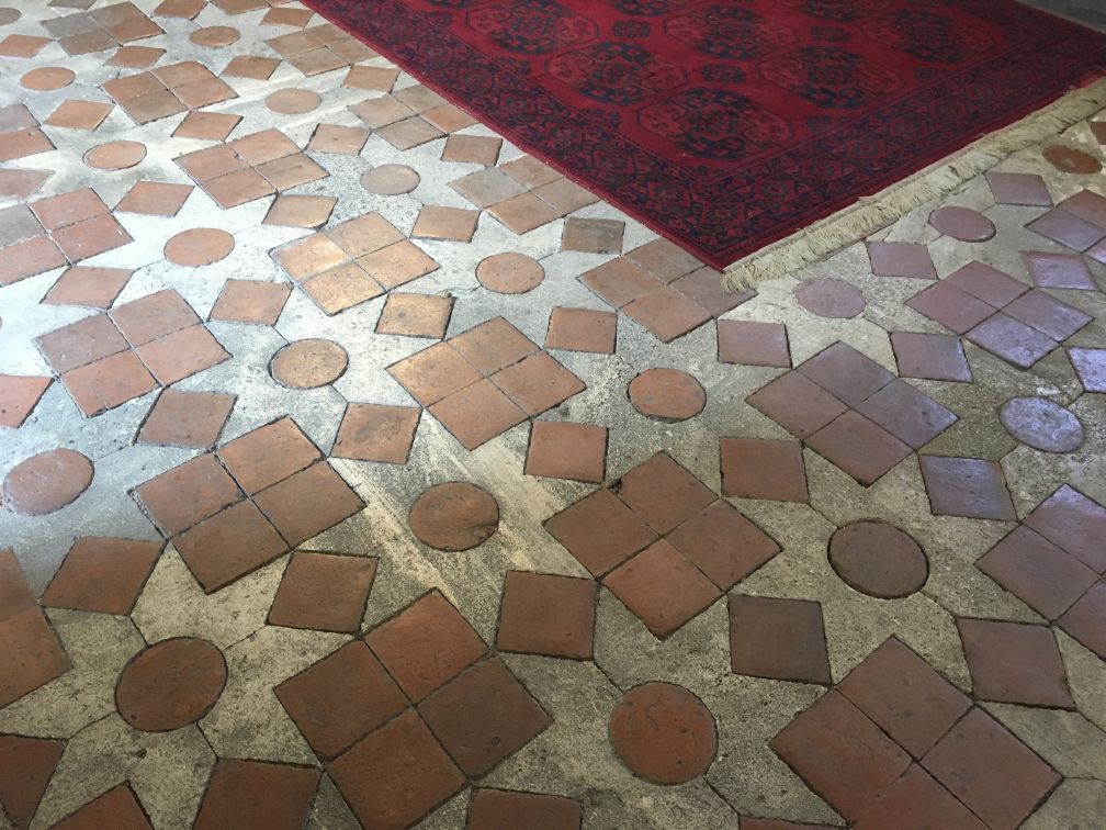 The floor is also simple with terra cotta tiles and cement vs. marble and granite in the church.