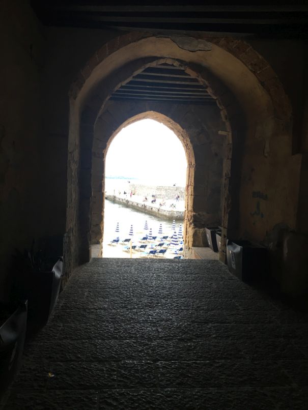 Porta Pescara archway makes a nice frame for a wonderfully photogenic shots of Cefalu town's beach