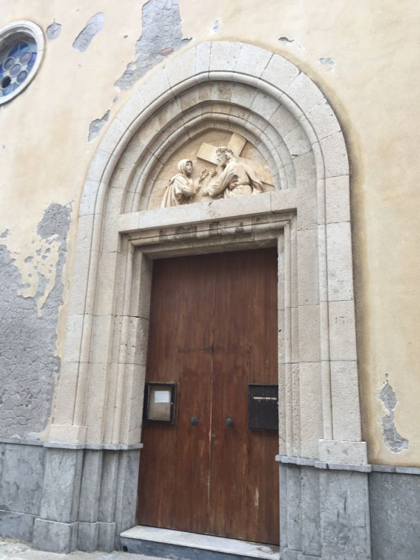 Overlooking at the sea the complex was initially formed by two adjacent churches: the church of San Giovanni Evangelista that was probably dated from the 15th century and the church of Santa Maria dell'Oditria short for dell"Itria which was only a chapel dedicated to San Michele the Archangel. The chapel was donated to the bishop Ottaviono Preconio and then both properties were merged in 1961 into a unique parish called dell'Itria e di San Giovanni.
