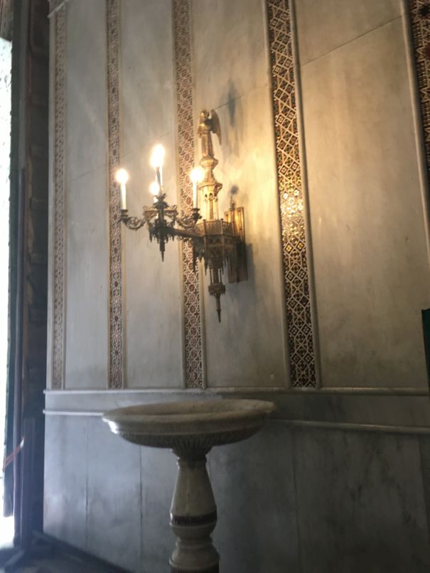 A holy water container made of marble at the entrance/exit of the cathedral |