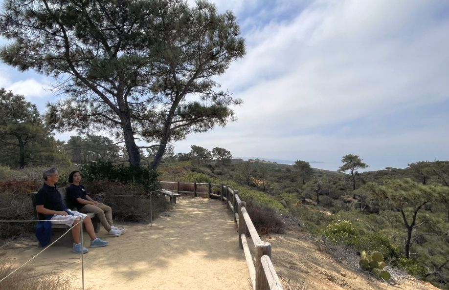 Rest area with 360 degree of the whole area. This area is full of Torrey pines, the rarest pine species in North America.