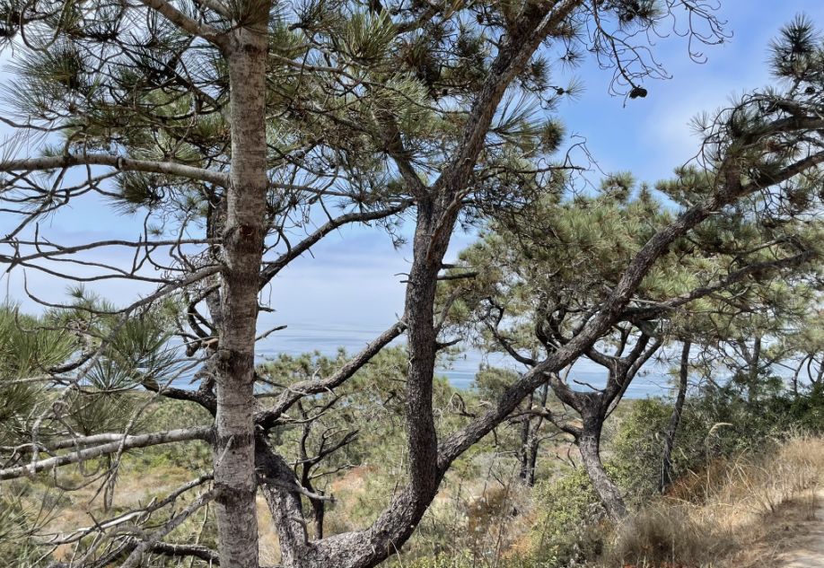 Surrounding us are the Torrey Pines which is officially the rarest pine species in North America.