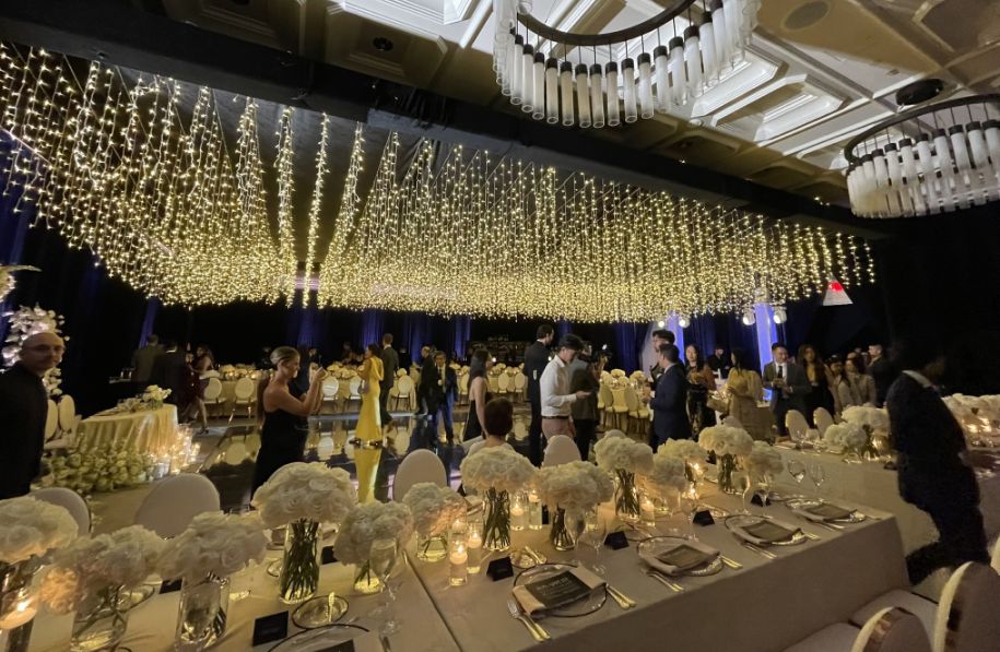 The reception room was magnificent with all the lights and the flowers.
