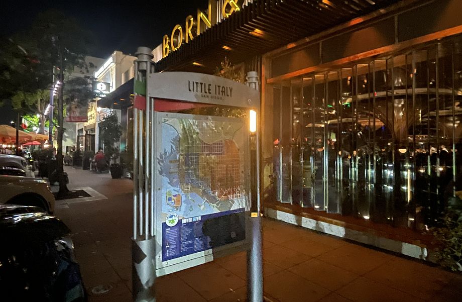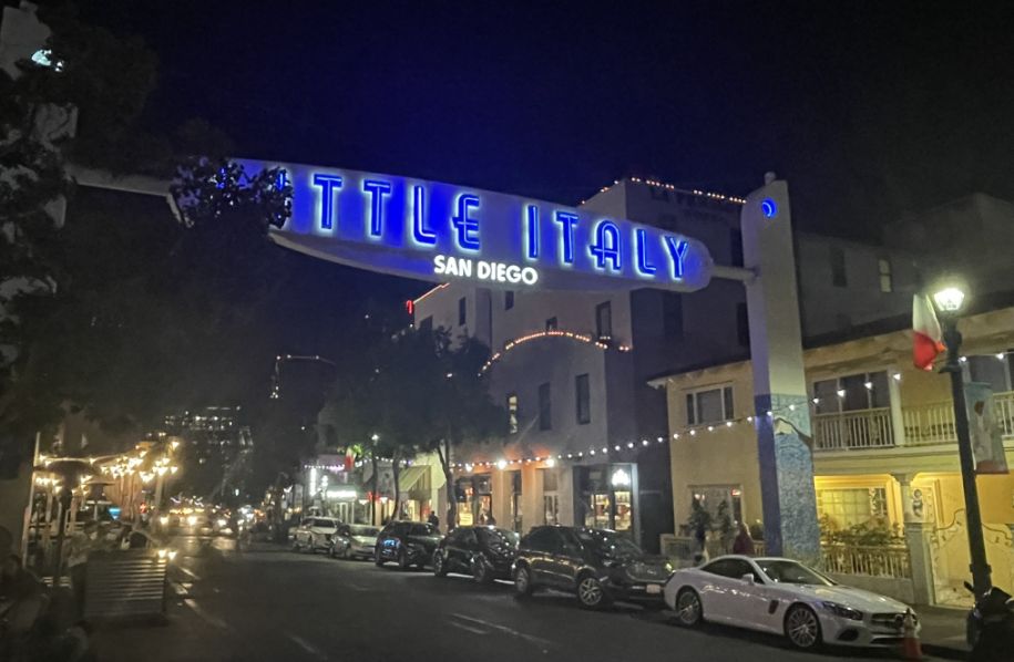 The illuminated “Little Italy” sign on India Street isn’t just decoration, it’s a symbol of history and identity for this part of San Diego. It was first lit in October 2000 during the 7th Annual Little Italy Festal, a neighborhood celebration that helped mark a period of revitalization for the area. The design reflects the neighborhood’s past as a center of Italian immigrant life and tuna fishing in the 20th century, when Italian and Portuguese fishermen made this area their home and helped establish San Diego as a hub of the tuna industry.