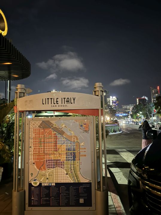 Before reaching the sign, we passed a Little Italy neighborhood map, almost like a quiet introduction, letting you know you’re about to enter a place with its own rhythm and personality.