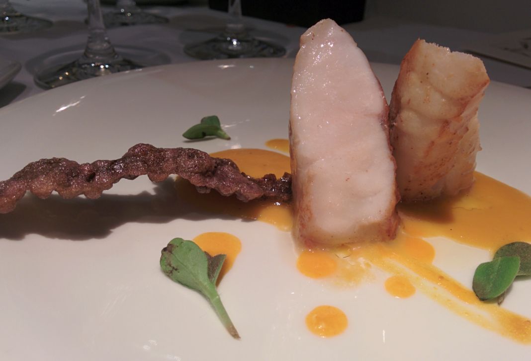 Grilled monkfish filet with sea buckthorn for a touch of acidity.