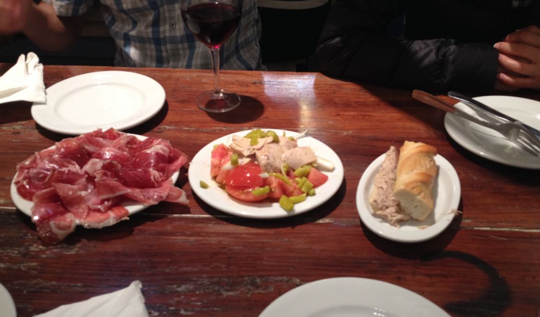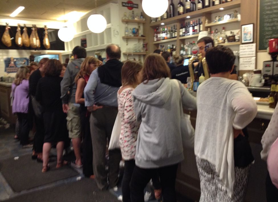 The bar is full of people. Spanish people do not eat like us. They usually don't eat a whole meal at a single restaurant, they like to hop from bar to bar.