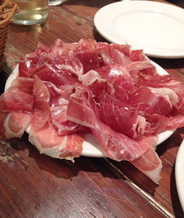 We started with a medium plate of Jamon de Bellota -€9.50 -special for Hoa.