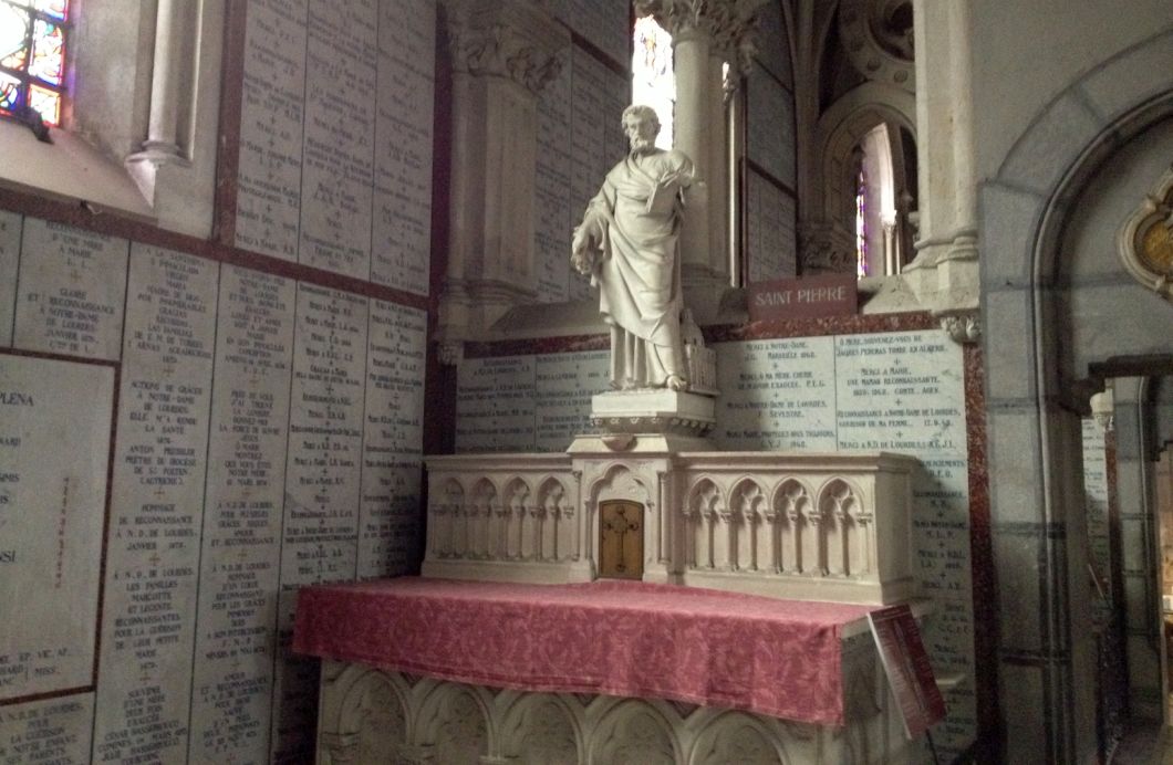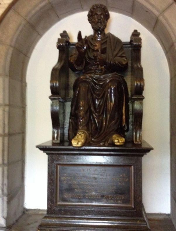 Next to Bernadette's portrait is a large bronze statue of St. Peter |