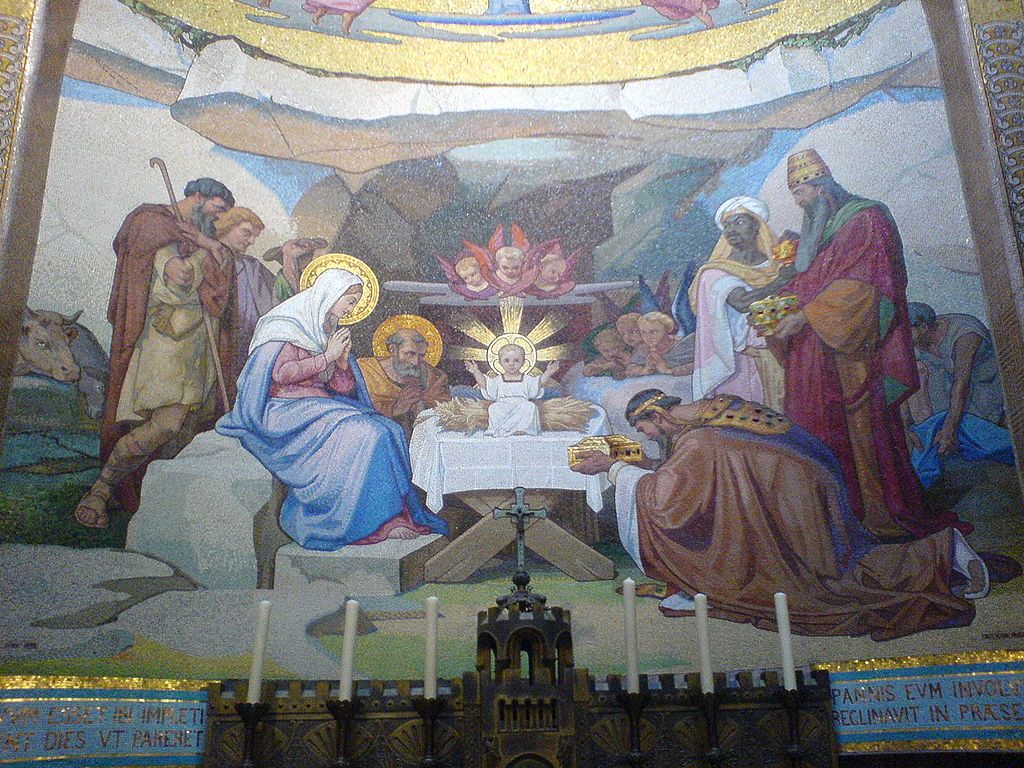 Large Mosaic depicting Jesus Nativity scene.