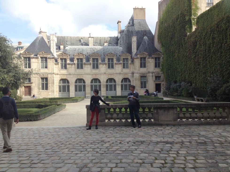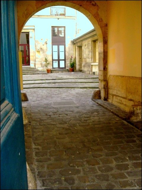 Entering the 2nd court yard facing Rue Saint Antoine ( in front of the building is the garden) -Magnificent cobblestone-paved front courtyard with beautiful sculptures.