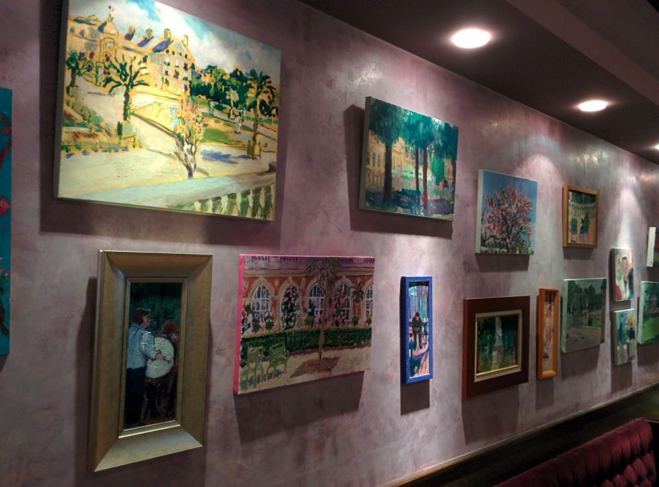 All the paintings on the wall are for sale and they from an American couple leaving in Paris.