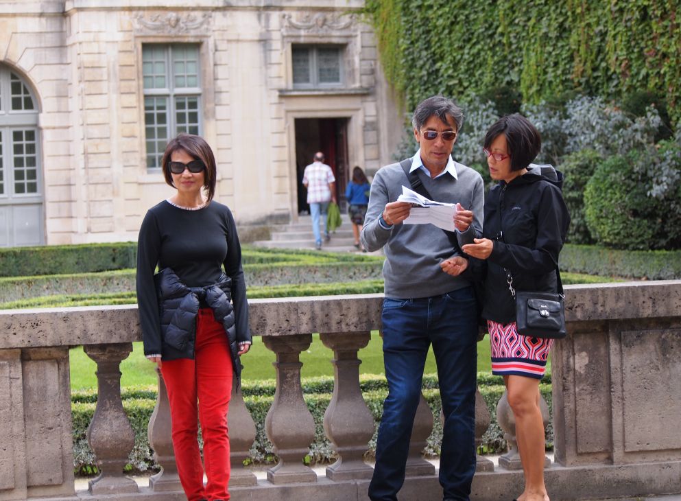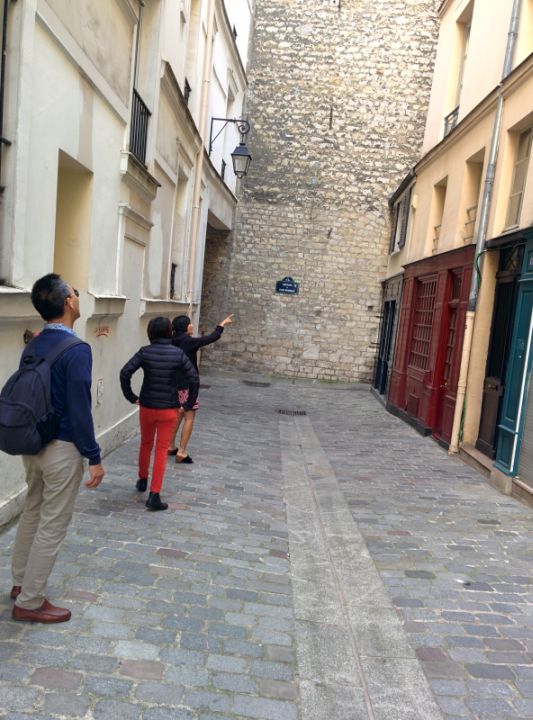 Hoa and I checking out how to get from here to our next stop which is rue des Vosges.