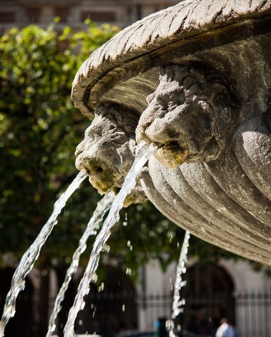 Above the 3 arched porticos you can see a line of small individually crafted statues serving as column supports and water spouts.