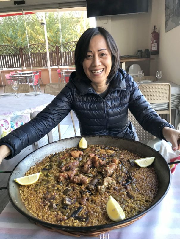 We also ordered the specialty of the house "Valencia Paella". They told us it will take 45 minutes and when the paella came out we were shock to see how large the pan was.