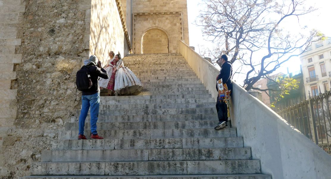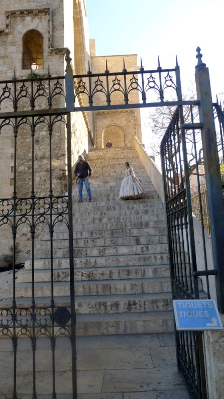 As we were going to go up a photographer and his assistant taking pictures of 2 models dressed up in Spanish period dress.