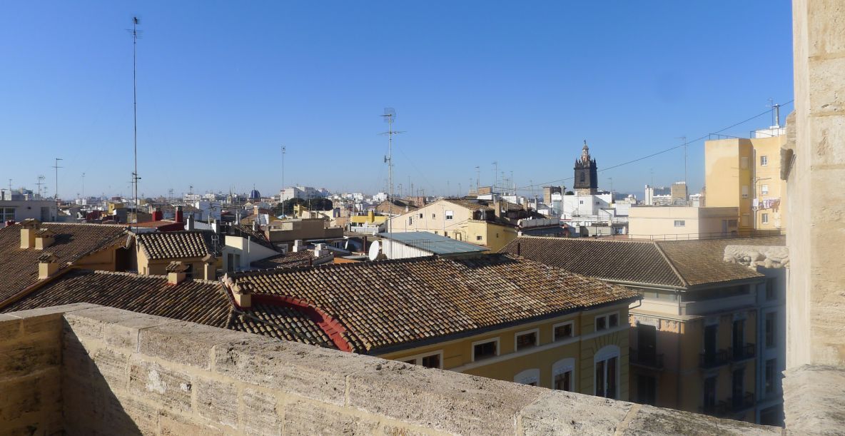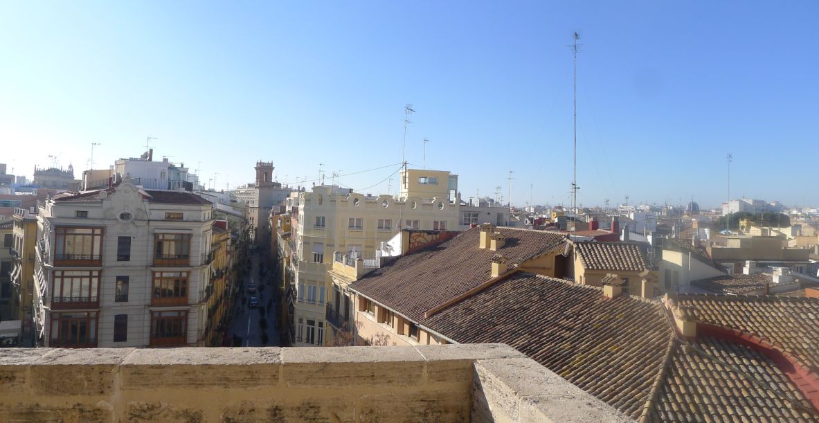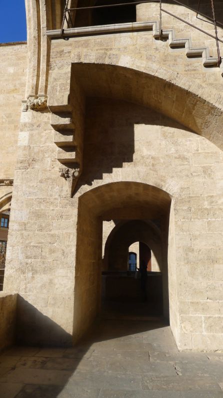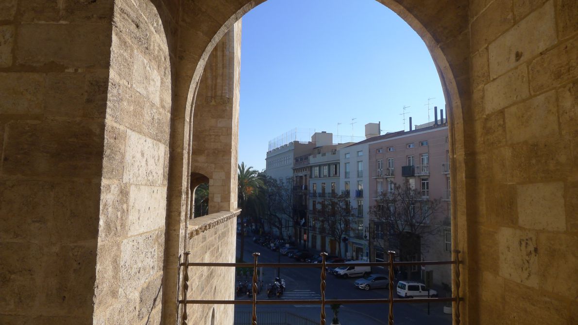 View of building from the ground floor. It is an important landmark and one of the best preserved monuments of Valencia.