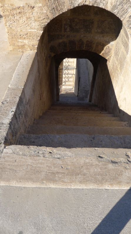 In 1397, when the works were nearly finished, it became apparent that the access to the main floor had to be improved. An enormous, monumental stone staircase was built, enlarging the building and facilitating its use for welcoming parties. The works were completed in March 1398.