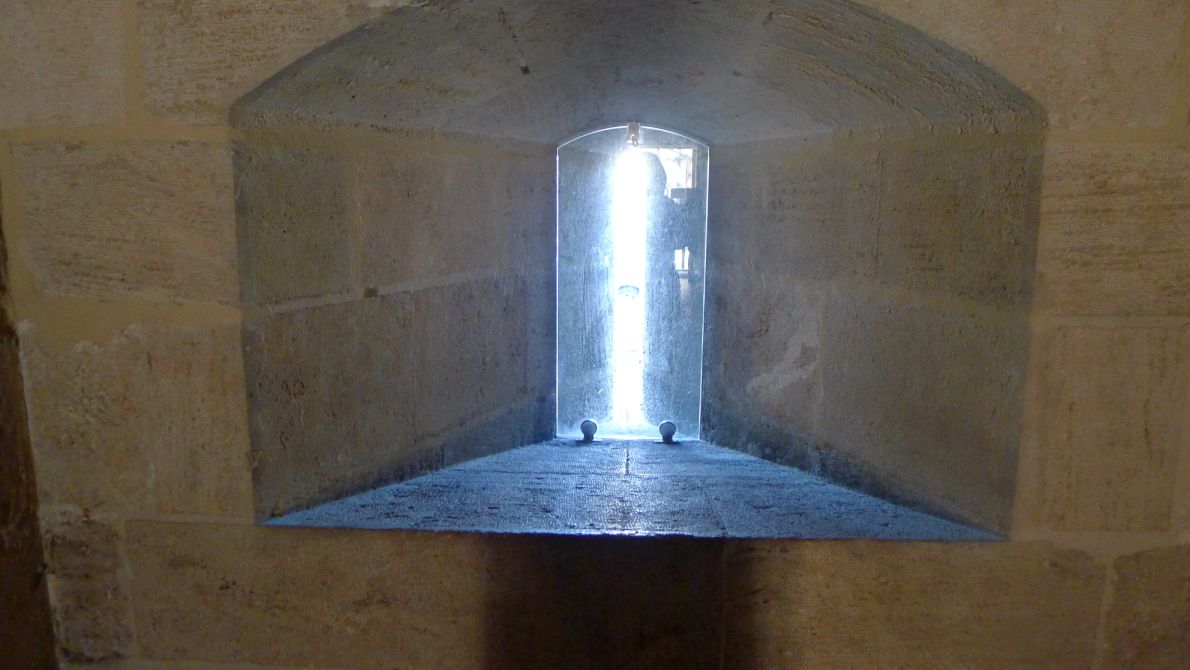 It is probably used to have an artillery pointing to the outside but now it is covered in a thick clear plastic so the light can still go in.