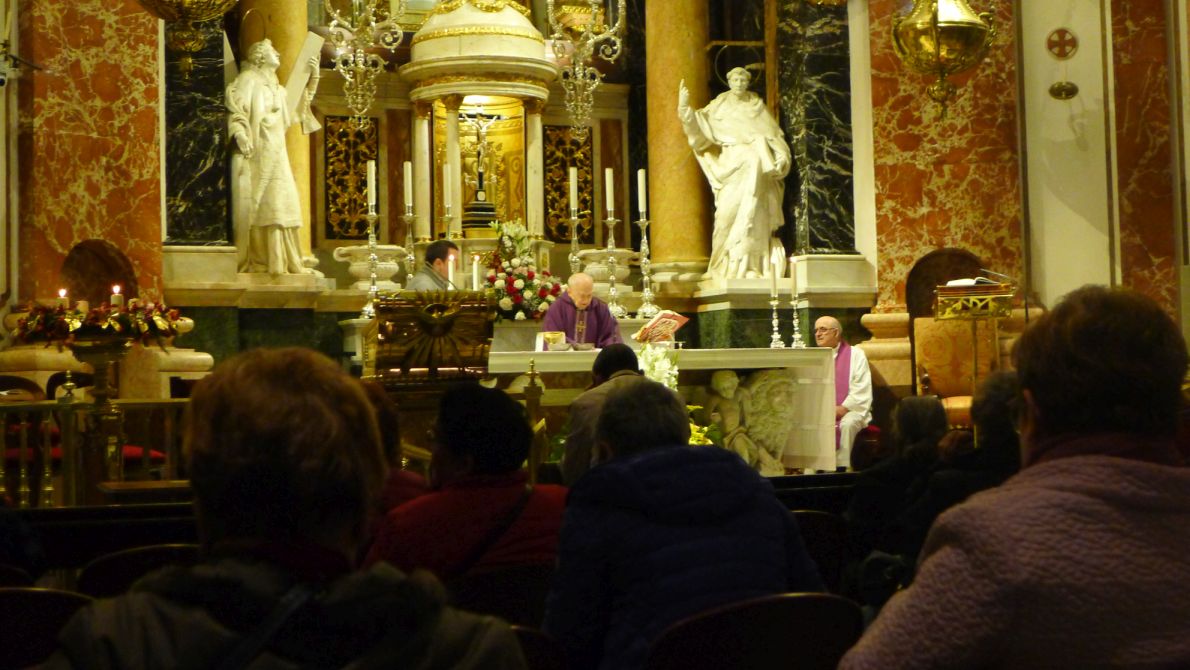 There was a mass in progress and there a lot of people attending.