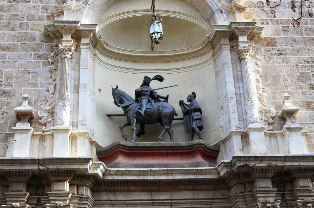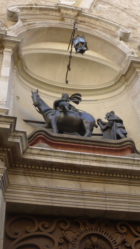 Statue above entrance door.