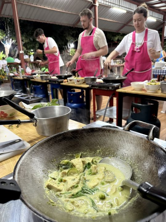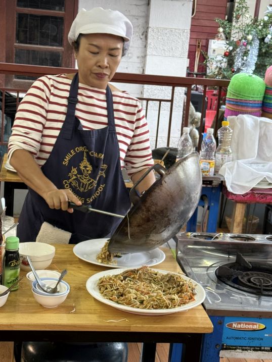 It was also lovely to spend the afternoon with the young people in our group. The relaxed atmosphere made it easy to chat, laugh, and share the experience together. One of the funniest moments came when Hoa proudly announced to everyone that his Pad Thai was the best. His playful confidence made the whole group laugh and added to the lighthearted spirit of the class. By the end of the session, it felt less like a class and more like a fun gathering of friends cooking and enjoying Thai food together.