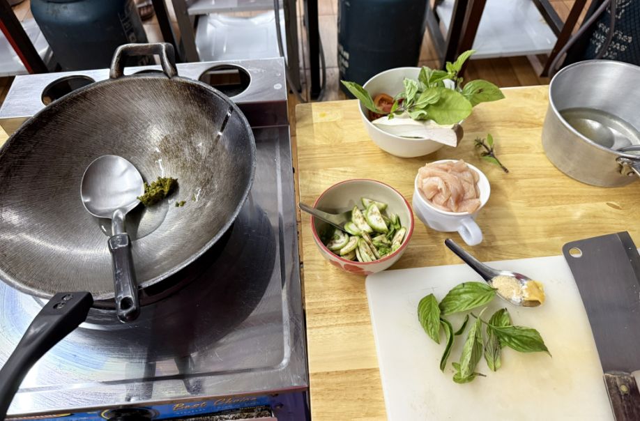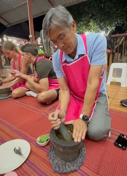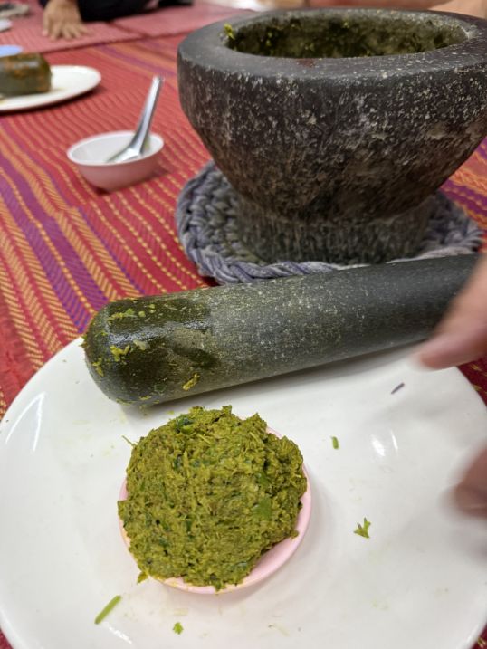 It was quite a workout! The curry paste is done. We choose green, but some people in the group choose red.