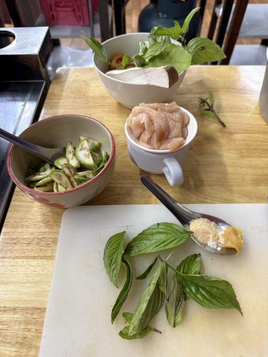We really had a wonderful time during the cooking class at Smile Organic Farm Cooking School. It was especially fun for Hoa, who normally doesn’t cook at all, yet he did surprisingly well with every dish. Seeing him confidently preparing the ingredients and cooking alongside everyone else made the experience even more enjoyable.