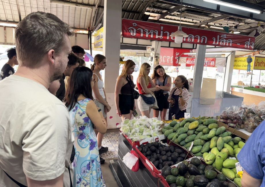 After a short rest, a bus picked us up directly from the hotel for a half-day Thai cooking class at Smile Organic Farm Cooking School. Once everyone was on board, our first stop was a small local market where we received a brief introduction to the fresh produce and ingredients that form the foundation of Thai cuisine.