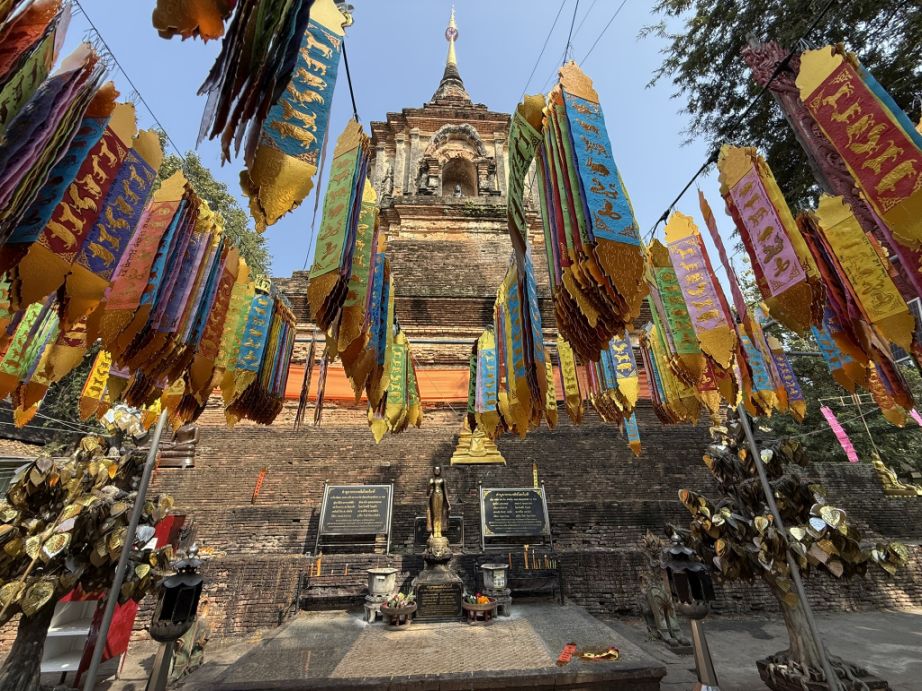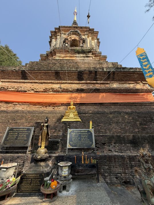 This chedi dates mainly to the 15th century, during the height of the Lanna Kingdom, and it served as a royal funerary monument where the ashes of members of the Lanna royal family were placed. The design symbolizes the spiritual journey upward, from the earthly level at the base to the enlightened realm represented at the top.