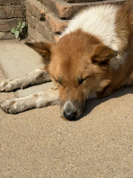 A Temple's dog resting peacefully on the temple's ground.