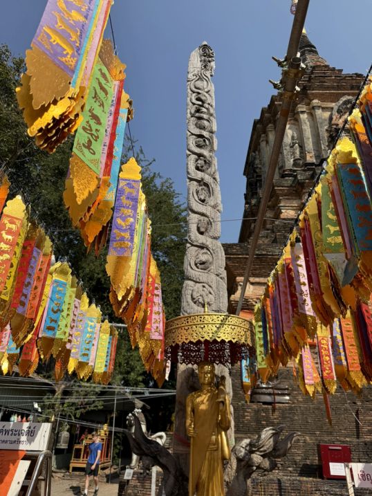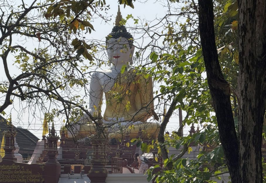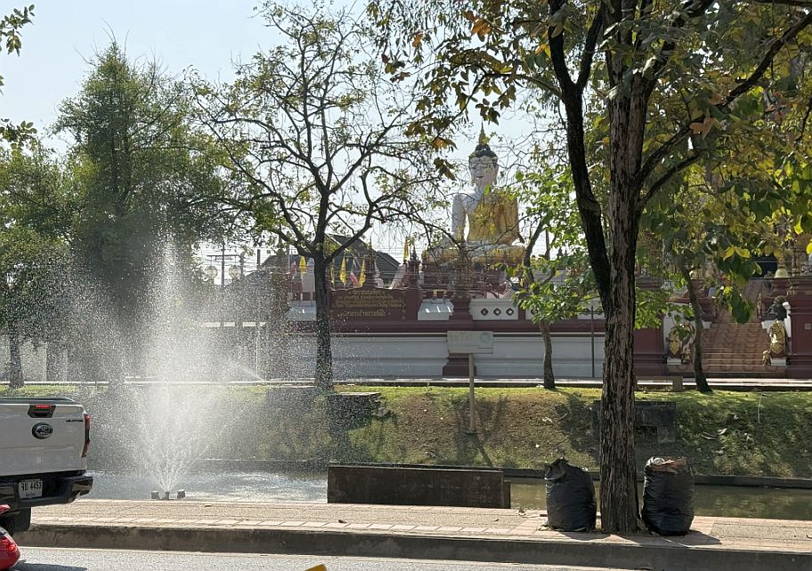 Seeing the statue from across the water basin creates a beautiful visual moment: the reflection of the water, the old city streets, and the tall Buddha rising above the neighborhood, another reminder of how deeply Buddhist temples shape the landscape and daily life of Chiang Mai.