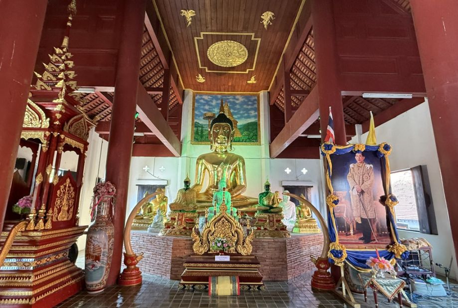 Once inside the main hall (viharn), there is a large golden Buddha statue seated at the altar.