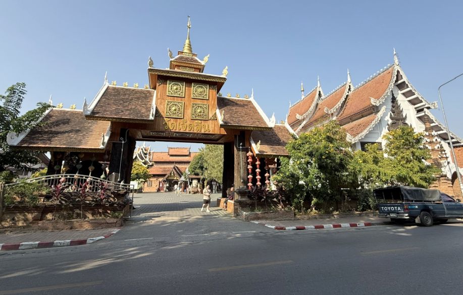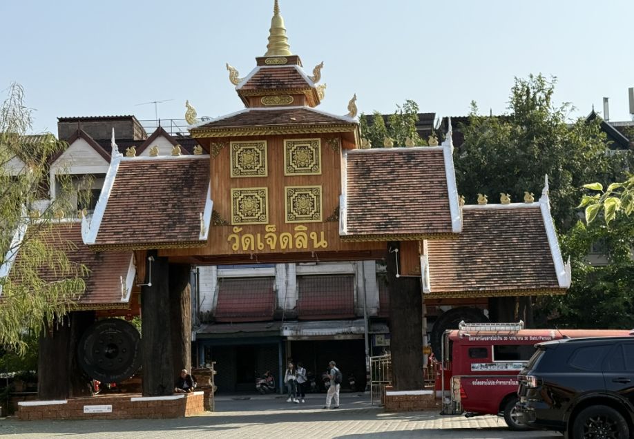 Continuing our walk, we arrived at Wat Chet Lin. The entrance to the temple is large and impressive, with a beautifully designed gateway that immediately draws visitors inside.