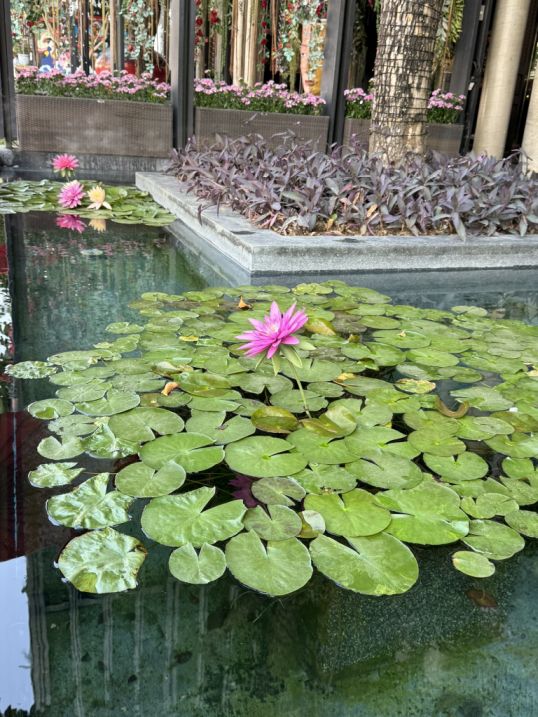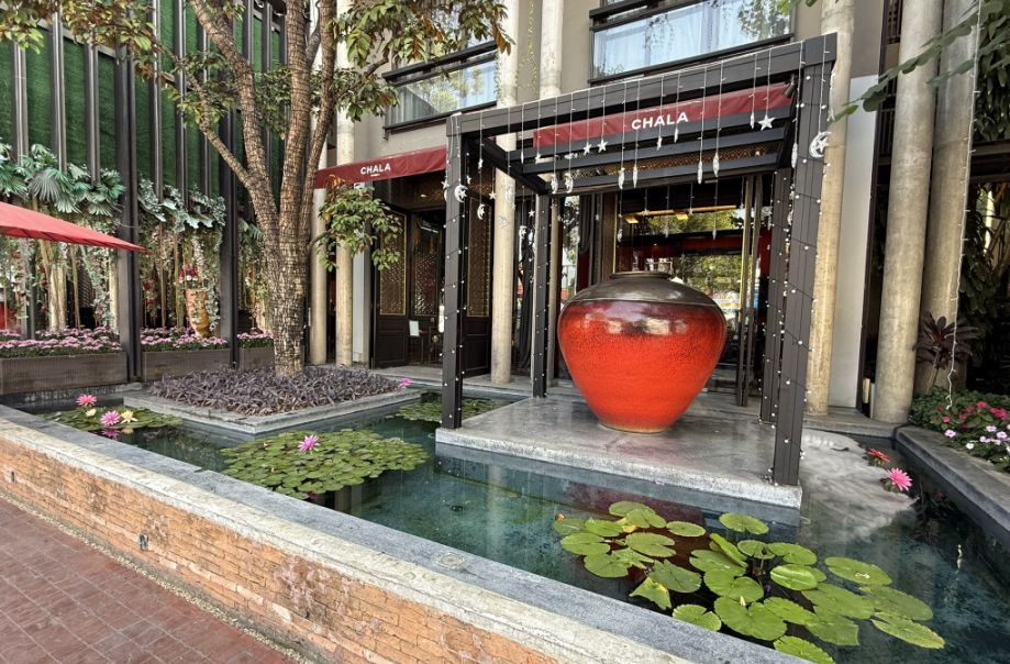 We are now on Prapokklao Road a significant road located right in the heart of the Old City. This is the front of the Chala Hotel with a lotus pond.