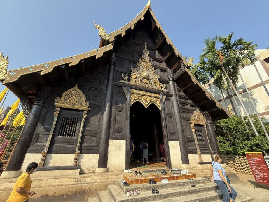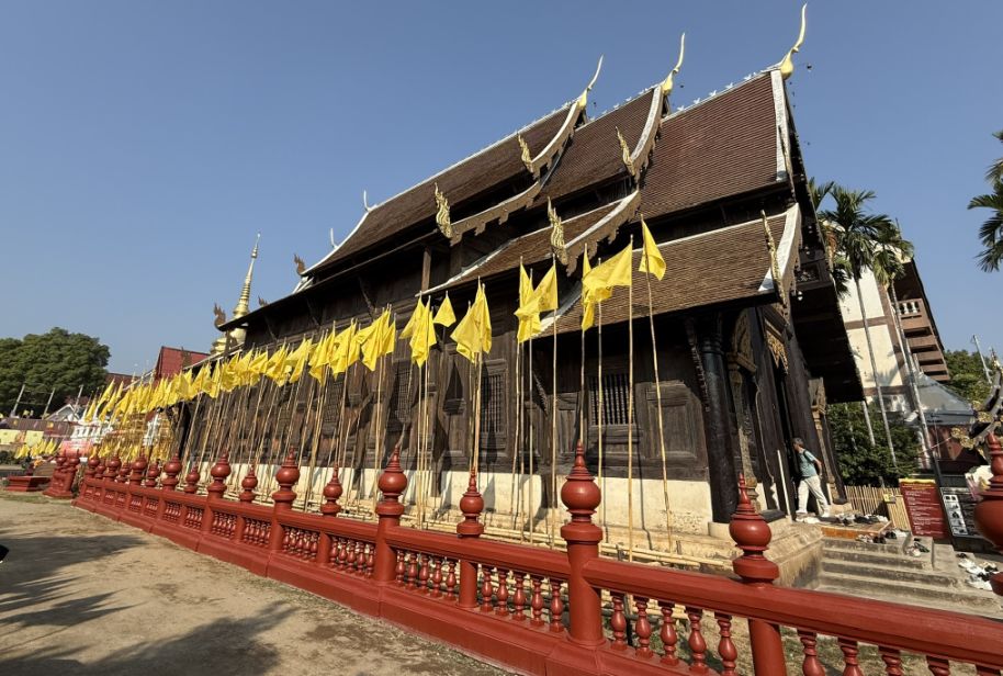 Wat Phan Tao is especially known for its beautiful wooden viharn (main hall). Unlike many temples in Chiang Mai that are covered in gold and bright colors, this hall is built almost entirely from dark teak wood in traditional Lanna architecture, giving it a very elegant and serene appearance. Historically, the building was once used as a royal palace hall before being converted into a temple structure in the 19th century during the reign of King Kawila.