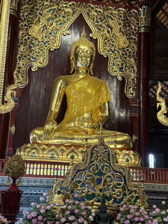 The golden Buddha, Phra Chao Pan Tao, seated on the main altar in