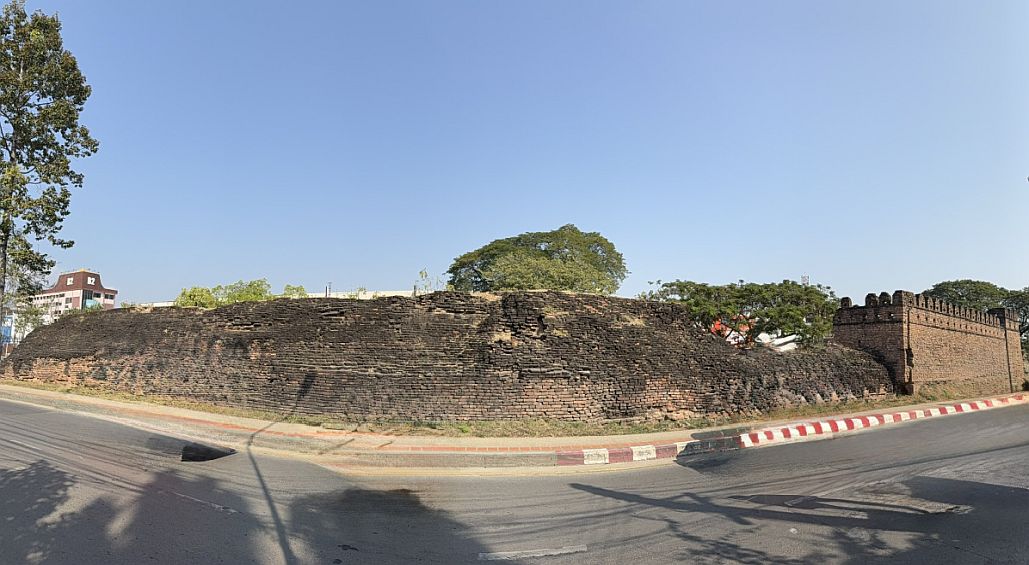 Chiang Mai was founded in 1296 by King Mangrai, who established the city as the capital of the Lanna Kingdom. To protect the new capital, the city was built in a rectangular plan surrounded by defensive walls and a moat. These fortifications were designed to protect the city from invasions by neighboring kingdoms such as Burma and Siam. Originally, the walls were made of brick and earth, reinforced by a wide moat that surrounded the entire old city. The city had four main gates, each facing a cardinal direction, plus several smaller gates used by local residents. Over the centuries, the walls were damaged by warfare, abandonment, and natural erosion. During the 18th century, after conflicts with the Burmese, much of the wall fell into ruin.