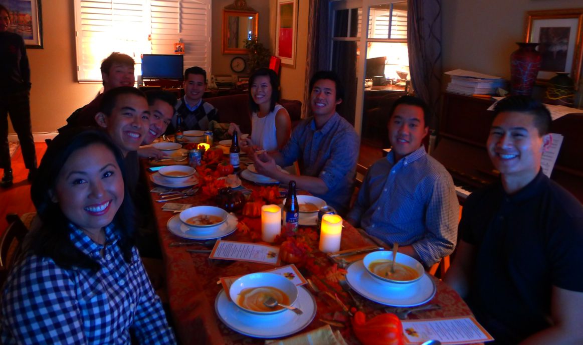 After the appetizers, which we totally forgot to take picture of, we served a roasted butternut squash soup courtesy of Hanh.