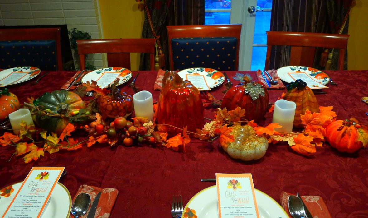 Last year is all about gold, this year the table is decorated with a warm red, orange, and earth tone.