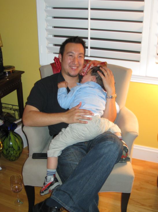 Jason had to hold Sam while we are eating.... |