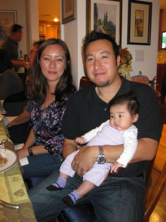 Nancy and Jason holding little Claire. |