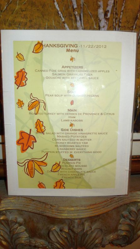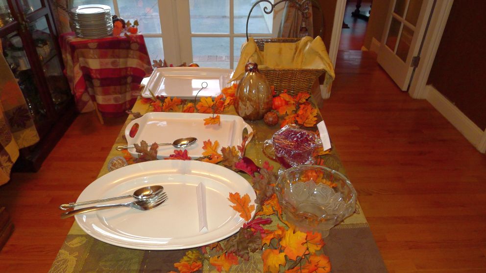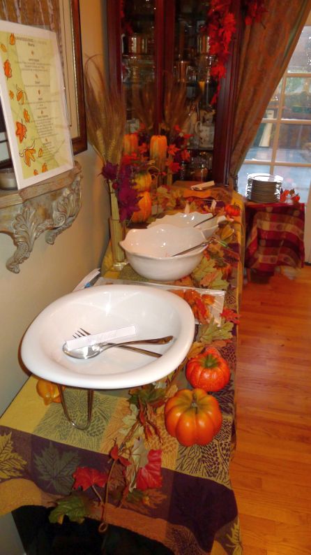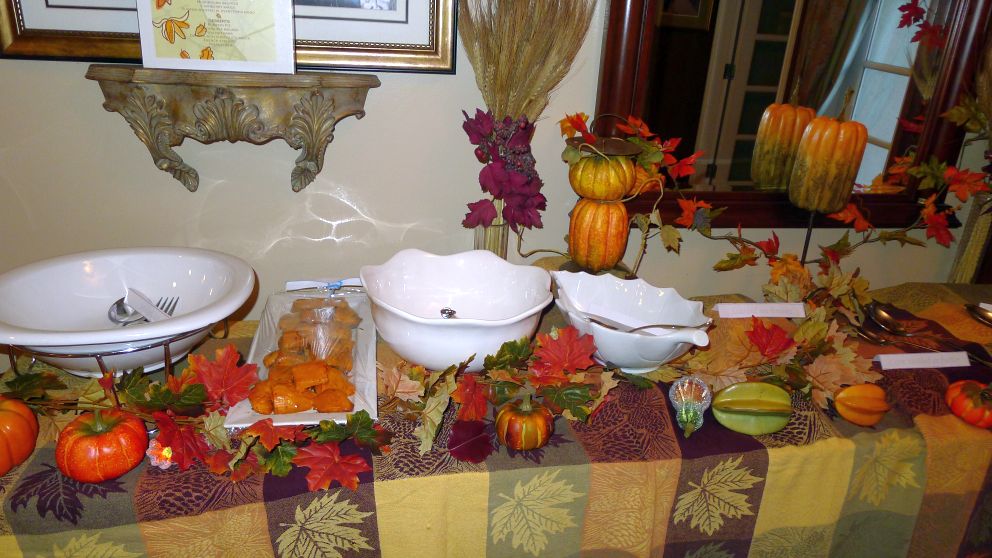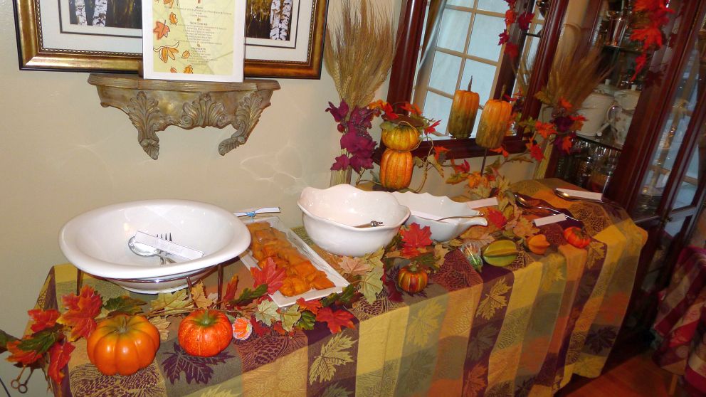 The 2nd buffet table is set up for Turkey, BBQ lamb Kabob, Ham, bread, gravy and homemade cranberry sauce.