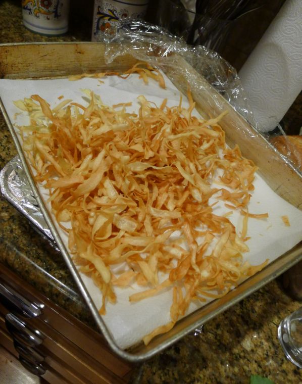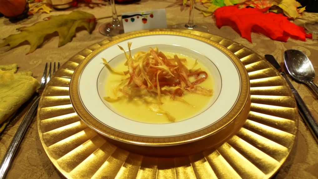 Instead of the traditional roasted butternut squash soup this year Maily is serving a parsnip soup with crispy fried parsnips chips.