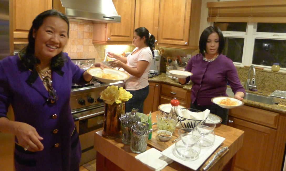 Platting soup for the adults with my Auntie Kim's and Maily's help.