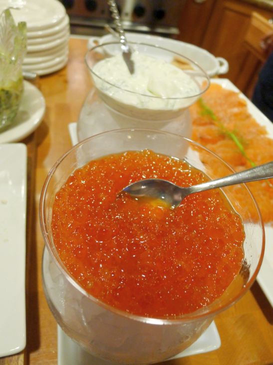 I buy red Russian caviar (in a tin) and then I add fresh ikura (salmon row). It is really delicious. |