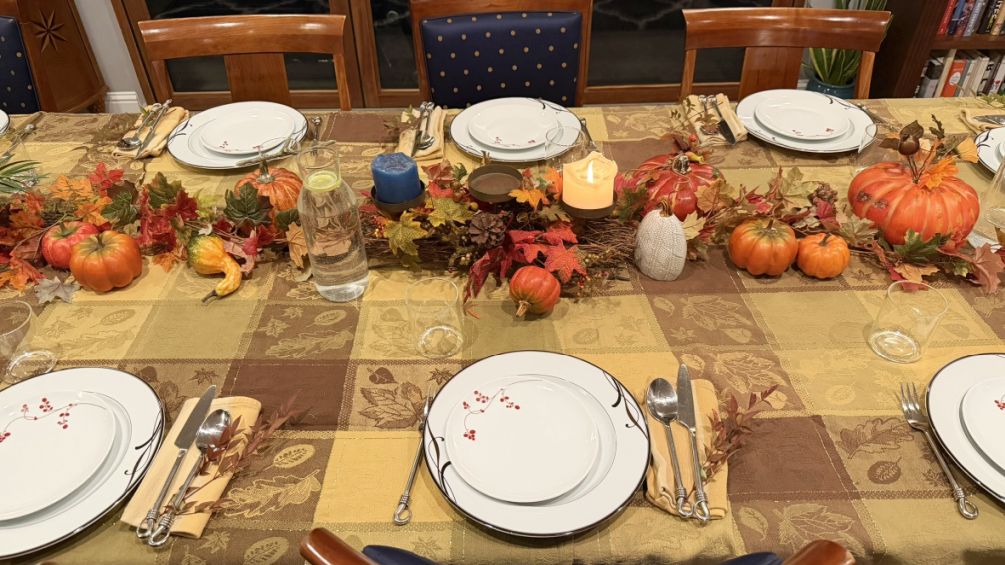 We are looking forward to hosting Thanksgiving at our house again this year, and I've truly enjoyed setting up the decorations with all the beautiful, vivid autumn colors. While the table was originally set for 16 guests, we have had a few changes as Kevin and Kristie will not make it, as they are at the hospital awaiting the arrival of baby Hazel! Tuan and Hanh also had a last-minute cancellation, so our Thanksgiving gathering will now be for 12 people.