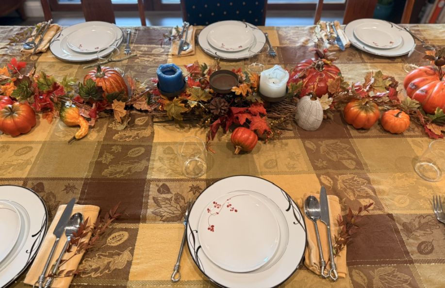 Table is set up and it is filled with the warmth of family, friends, and truly beautiful autumn colors.