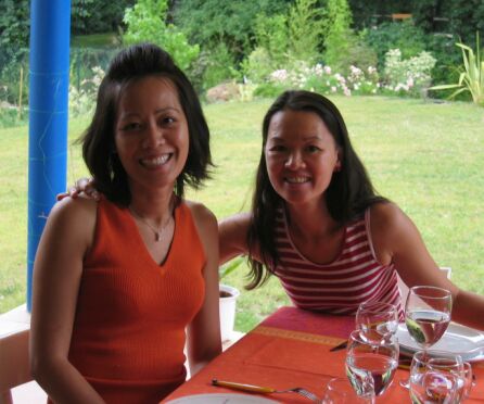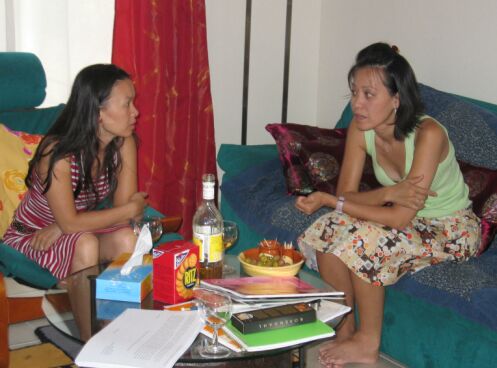 Nathalie and I in a deep conversation and enjoying some appetizers and a good glass of wine.