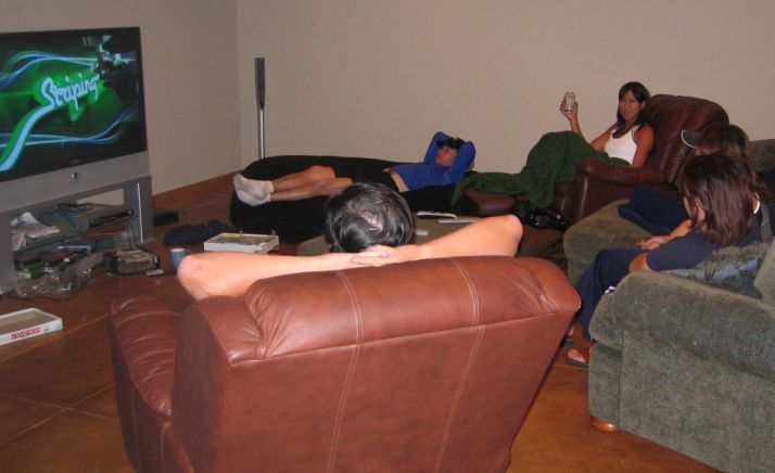 Here we are in the game room, relaxing after dinner.